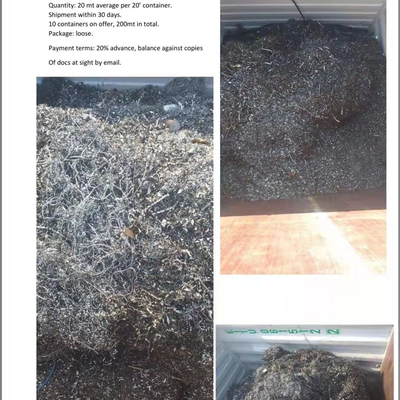 中东低碳钢刨花,10柜约200吨,水、油及其它杂质总共不超过3%