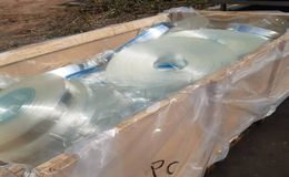 供应PC原色板材切边,有保护膜,3吨 PC原色切边, 部份是空心板,有PVC保护膜, 4吨 PC原色卷筒,15吨