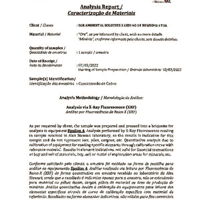 温馨提示:平台私底下交易请注意资金安全!!(需要客户微信或邮箱的请直接联系客服 电话:18566395007) 巴西的铜精矿(Copper conc) 贵金属包含 Si(硅) 6.803 % S 9.938 % Fe(铁) 11.111 % Ni(镍) 0.147 % Cu(铜) 27.702 % CuO(氧化铜) 34.676 % Ag(银) 94.734 ppm Au(金) 25.927 ppm F(氟) 0.038 ppm