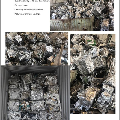 60%有漆,40%没有漆。铁和塑料杂质不超过1%。压块尺寸:40x40x40-60厘米,数量:3个40尺柜,每柜约25吨。货在以色列货场。
